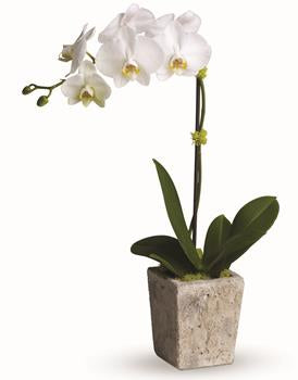 With it’s understated elegance, this gorgeous white orchid is a long-lasting choice.
