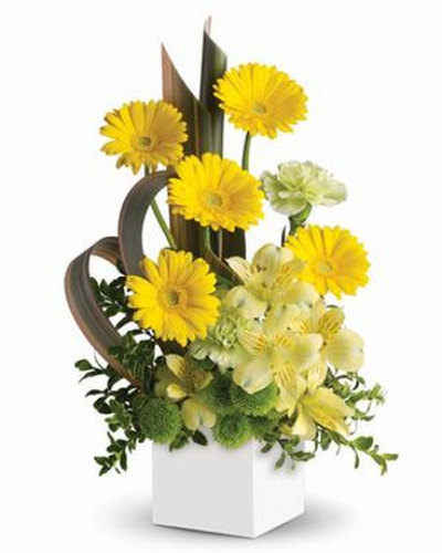 Send smiles across the miles. This artful box arrangement of sunny yellow blooms is specially designed to warm hearts and brighten days!