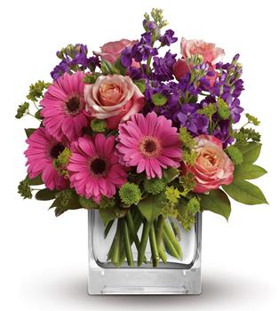 Like the dawn of a fine spring day, this pretty pink gift of gerberas and roses promises happiness!